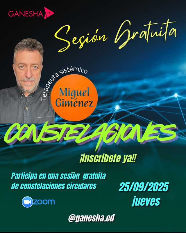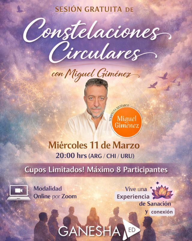 El próximo jueves 25 de septiembre a las 20:00 hrs (Chile/Argentina), el terapeuta holístico Miguel Jiménez nos guiará en una Sesión de Constelaciones Circulares completamente gratuita a través de Zoom.